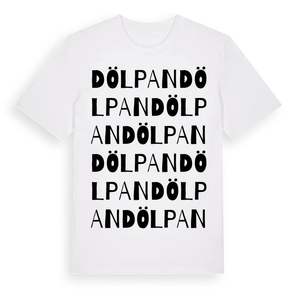 Dölpan ordlek t-shirt är inspirerad av Dölpan i Örebro län, Sverige. Tröjan är designad för dig som har en speciell koppling till platsen – oavsett om du bor här, har rötterna här eller bara älskar Dölpan.