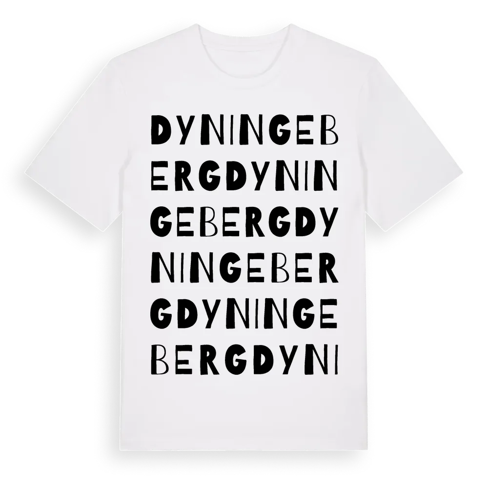 Dyningeberg ordlek t-shirt är inspirerad av Dyningeberg i Örebro län, Sverige. Tröjan är designad för dig som har en speciell koppling till platsen – oavsett om du bor här, har rötterna här eller bara älskar Dyningeberg.