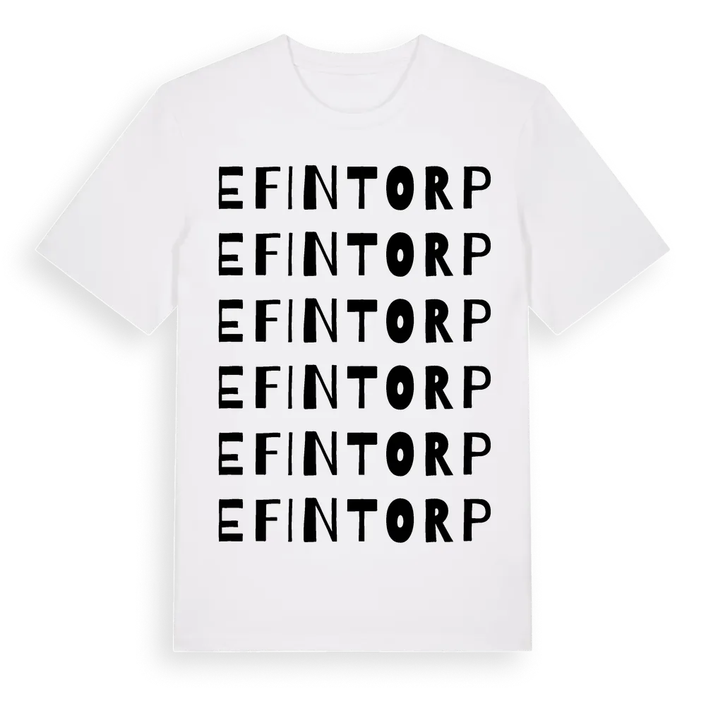 Efintorp ordlek t-shirt är inspirerad av Efintorp i Örebro län, Sverige. Tröjan är designad för dig som har en speciell koppling till platsen – oavsett om du bor här, har rötterna här eller bara älskar Efintorp.