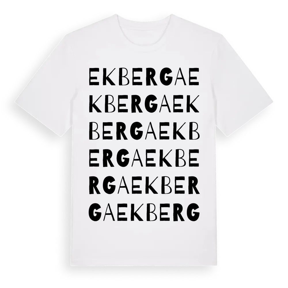 Ekberga ordlek t-shirt är inspirerad av Ekberga i Örebro län, Sverige. Tröjan är designad för dig som har en speciell koppling till platsen – oavsett om du bor här, har rötterna här eller bara älskar Ekberga.
