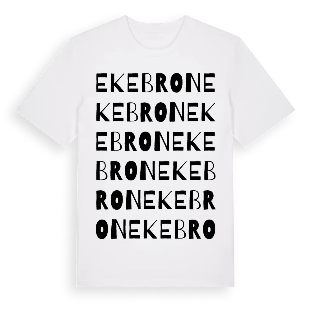 Ekebron ordlek t-shirt är inspirerad av Ekebron i Örebro län, Sverige. Tröjan är designad för dig som har en speciell koppling till platsen – oavsett om du bor här, har rötterna här eller bara älskar Ekebron.