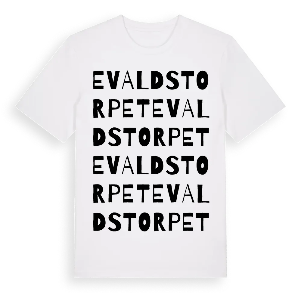 Evaldstorpet ordlek t-shirt är inspirerad av Evaldstorpet i Örebro län, Sverige. Tröjan är designad för dig som har en speciell koppling till platsen – oavsett om du bor här, har rötterna här eller bara älskar Evaldstorpet.