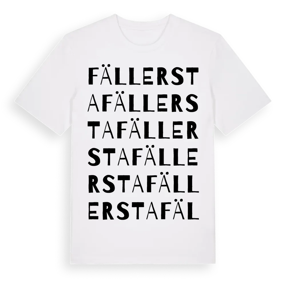 Fällersta ordlek t-shirt är inspirerad av byn Fällersta i Örebro län, Sverige. Tröjan är designad för dig som har en speciell koppling till platsen – oavsett om du bor här, har rötterna här eller bara älskar Fällersta.