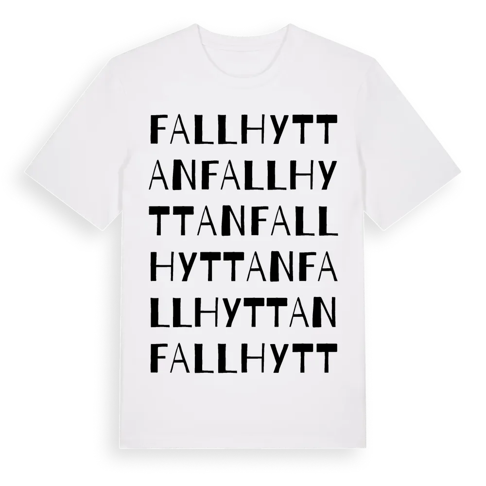 Fallhyttan ordlek t-shirt är inspirerad av Fallhyttan i Örebro län, Sverige. Tröjan är designad för dig som har en speciell koppling till platsen – oavsett om du bor här, har rötterna här eller bara älskar Fallhyttan.
