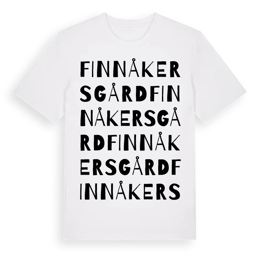 Finnåkers Gård ordlek t-shirt är inspirerad av byn Finnåkers Gård i Örebro län, Sverige. Tröjan är designad för dig som har en speciell koppling till platsen – oavsett om du bor här, har rötterna här eller bara älskar Finnåkers Gård.