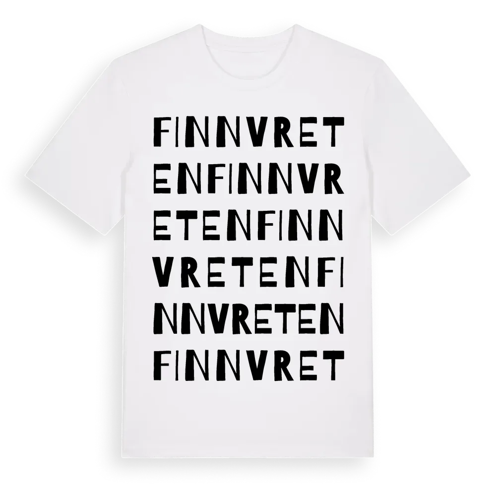 Finnvreten ordlek t-shirt är inspirerad av Finnvreten i Örebro län, Sverige. Tröjan är designad för dig som har en speciell koppling till platsen – oavsett om du bor här, har rötterna här eller bara älskar Finnvreten.