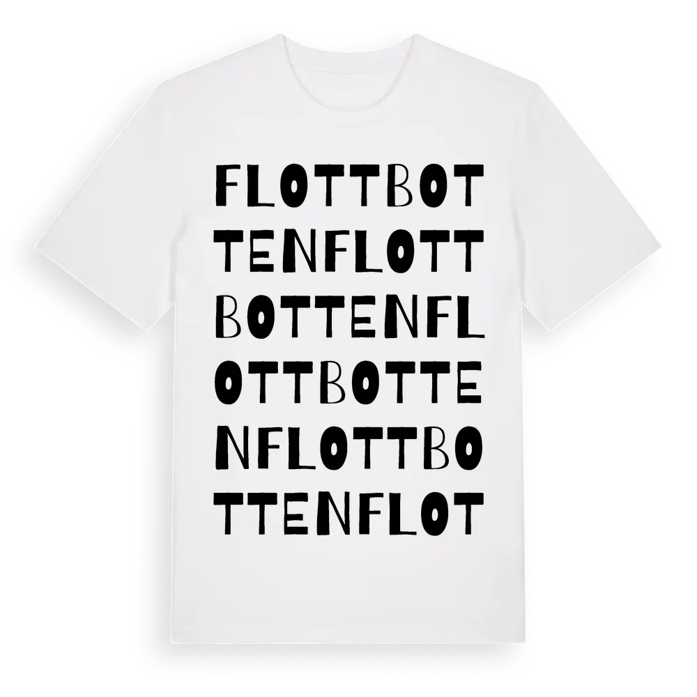 En ordlek byggd på Flottbottens namn. Subtilt och klurig – ett motiv som bara de som verkligen känner platsen fullt ut förstår. Premium bomull, unisex – från Flottbotten i Örebro län.