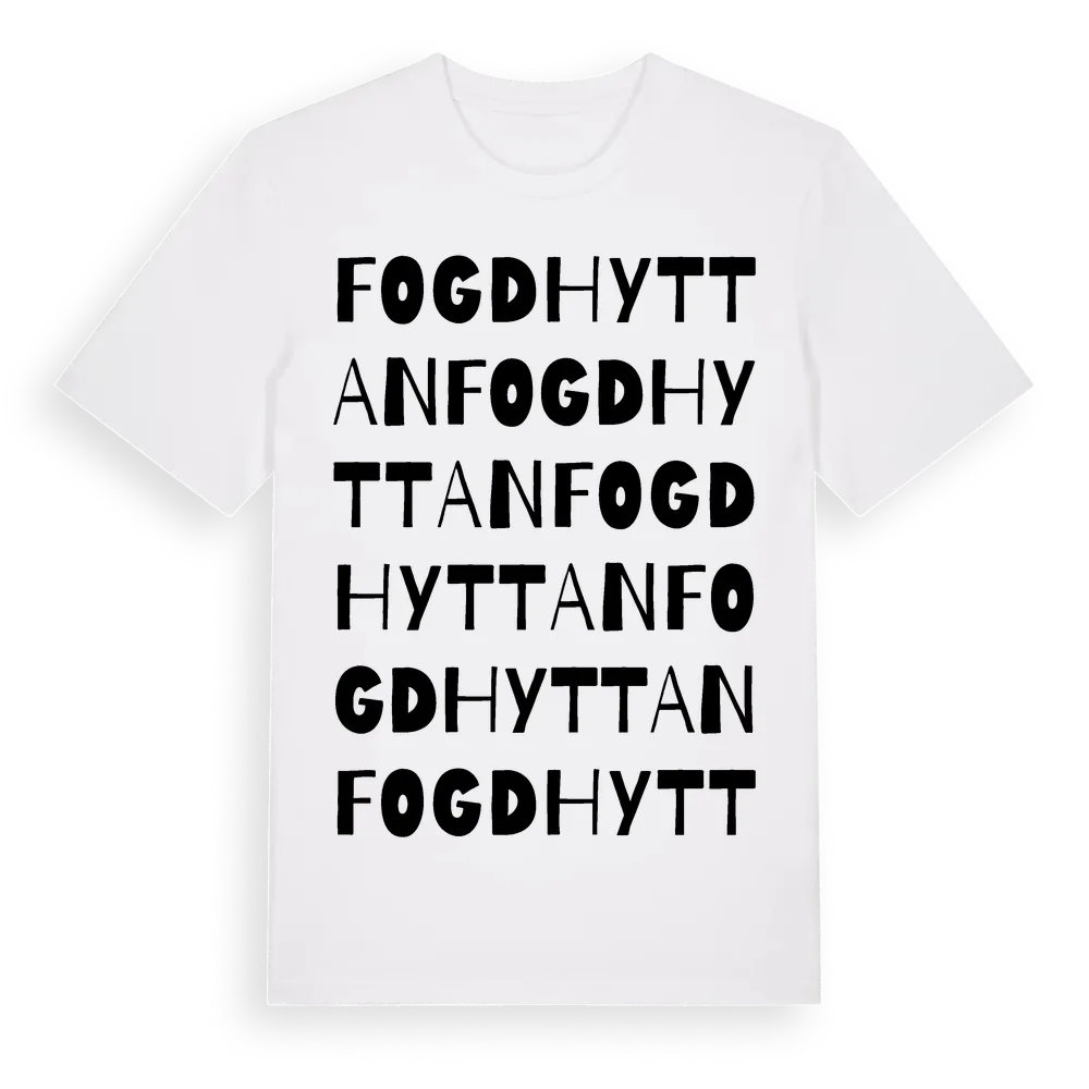 Fogdhyttan ordlek t-shirt är inspirerad av Fogdhyttan i Örebro län, Sverige. Tröjan är designad för dig som har en speciell koppling till platsen – oavsett om du bor här, har rötterna här eller bara älskar Fogdhyttan.