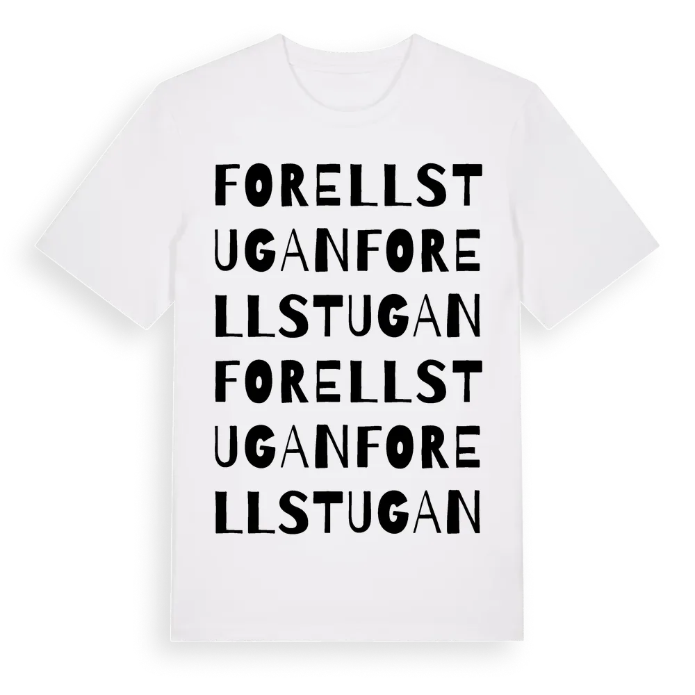 Forellstugan ordlek t-shirt är inspirerad av Forellstugan i Örebro län, Sverige. Tröjan är designad för dig som har en speciell koppling till platsen – oavsett om du bor här, har rötterna här eller bara älskar Forellstugan.