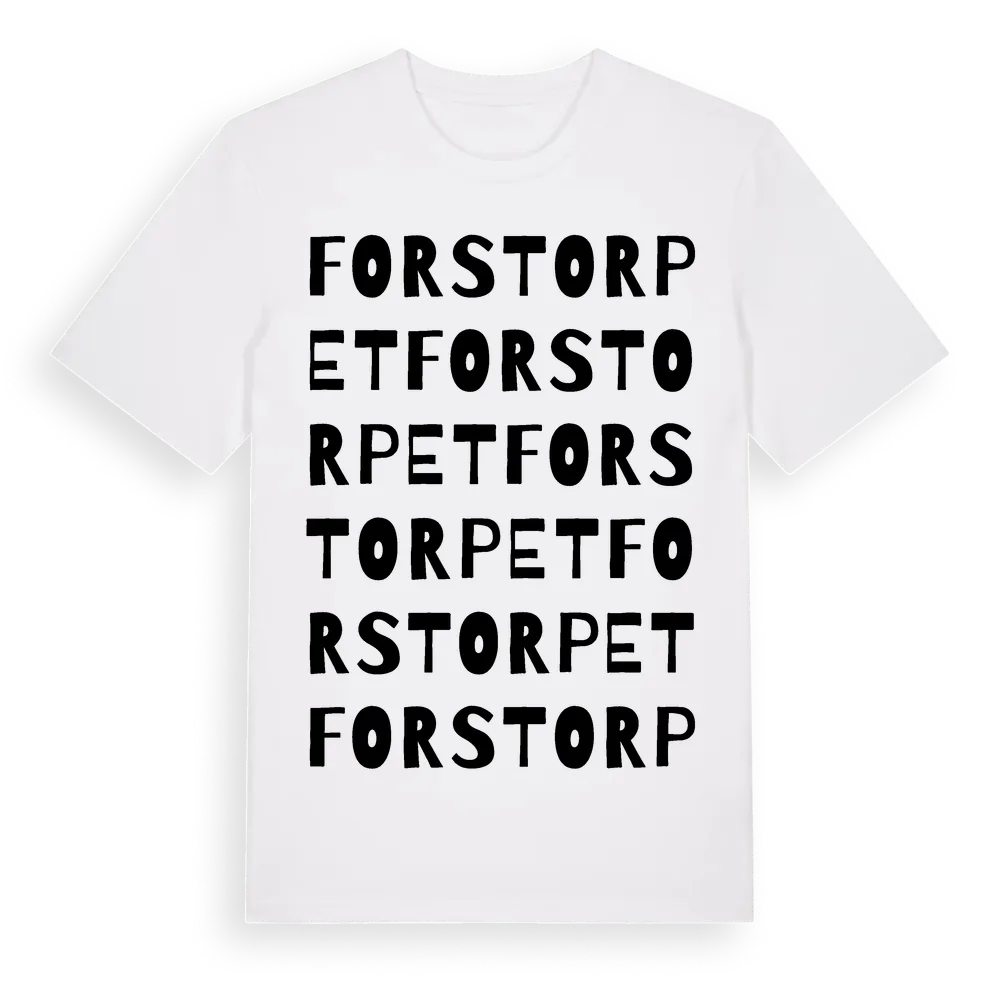 Forstorpet ordlek t-shirt är inspirerad av Forstorpet i Örebro län, Sverige. Tröjan är designad för dig som har en speciell koppling till platsen – oavsett om du bor här, har rötterna här eller bara älskar Forstorpet.
