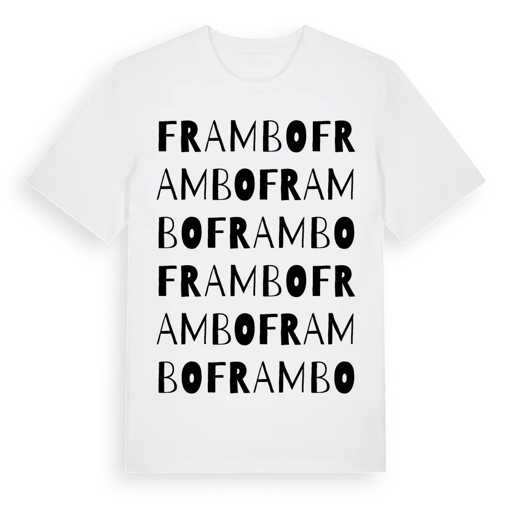 Frambo ordlek t-shirt är inspirerad av Frambo i Örebro län, Sverige. Tröjan är designad för dig som har en speciell koppling till platsen – oavsett om du bor här, har rötterna här eller bara älskar Frambo.