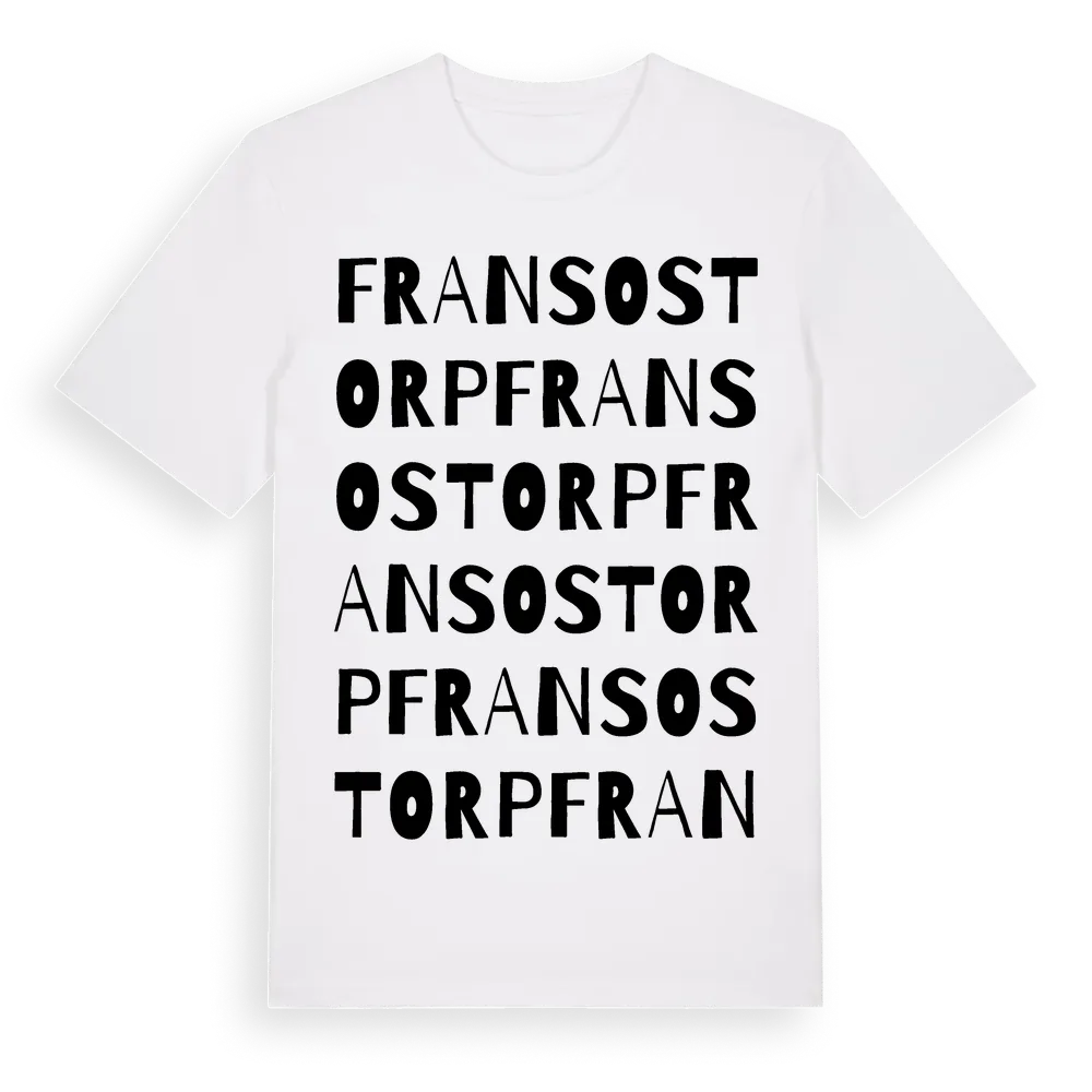 Fransostorp ordlek t-shirt är inspirerad av Fransostorp i Örebro län, Sverige. Tröjan är designad för dig som har en speciell koppling till platsen – oavsett om du bor här, har rötterna här eller bara älskar Fransostorp.