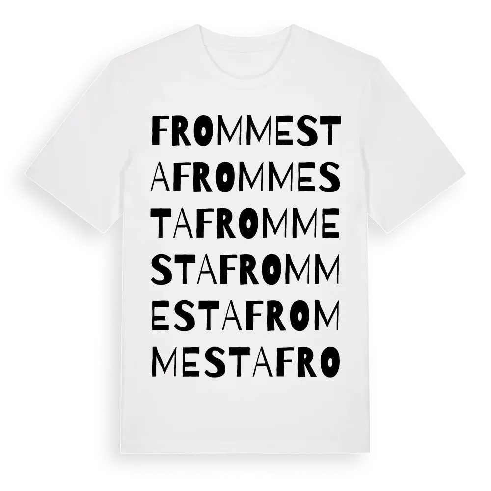 Frommesta ordlek t-shirt är inspirerad av byn Frommesta i Örebro län, Sverige. Tröjan är designad för dig som har en speciell koppling till platsen – oavsett om du bor här, har rötterna här eller bara älskar Frommesta.