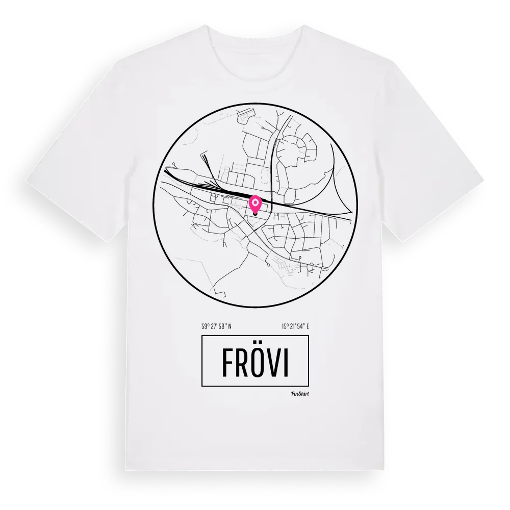 Frövi t-shirt är inspirerad av byn Frövi i Örebro län, Sverige. Tröjan är designad för dig som har en speciell koppling till platsen – oavsett om du bor här, har rötterna här eller bara älskar Frövi.