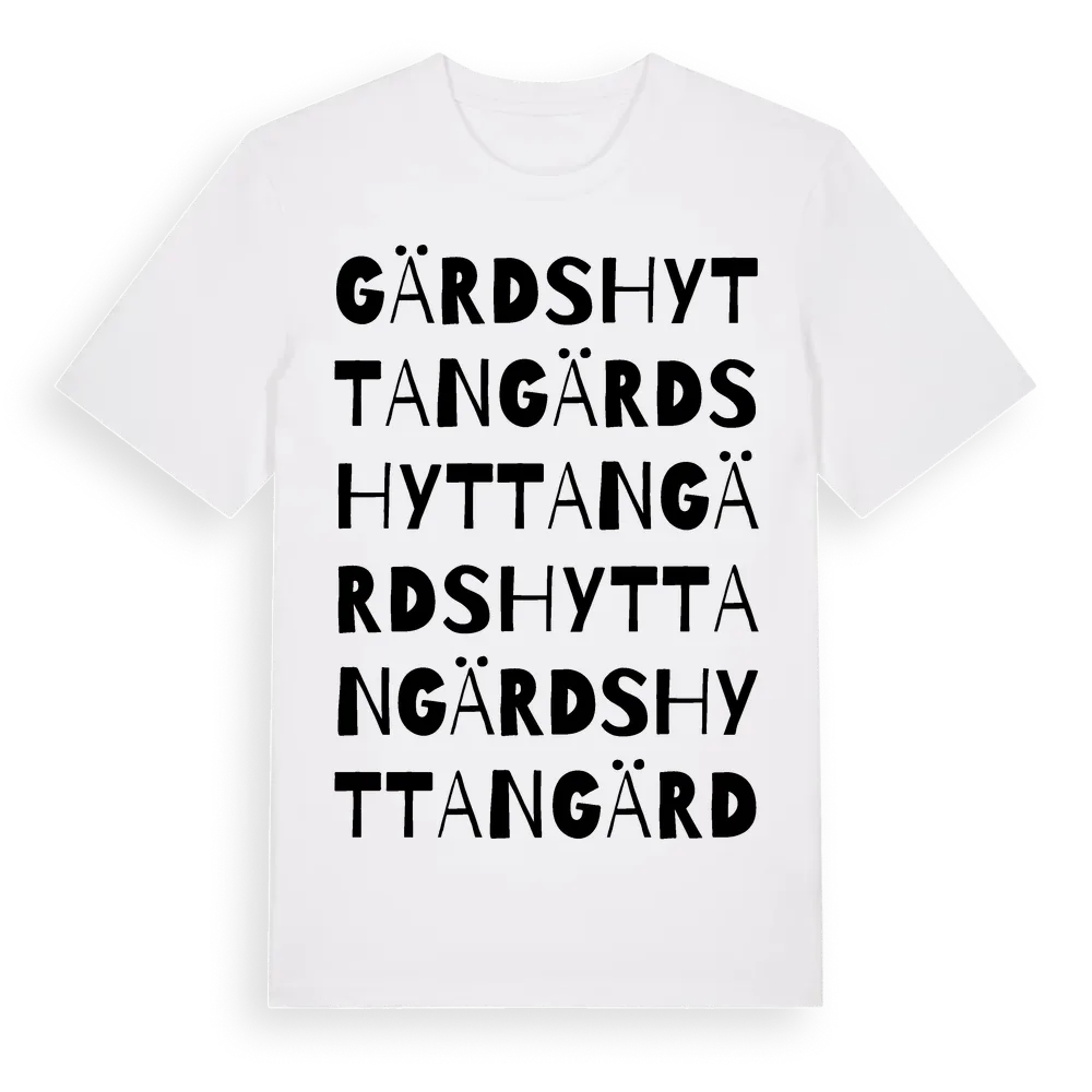 Gärdshyttan ordlek t-shirt är inspirerad av byn Gärdshyttan i Örebro län, Sverige. Tröjan är designad för dig som har en speciell koppling till platsen – oavsett om du bor här, har rötterna här eller bara älskar Gärdshyttan.
