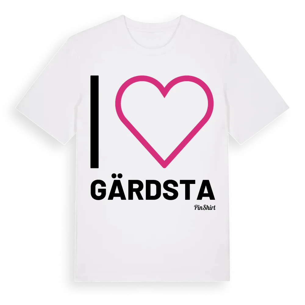 Det klassiska "I ❤ Gärdsta"-motivet i stort format som täcker hela bröstet. För dig som vill visa kärleken till Gärdsta på riktigt. Premium bomull, unisex – från Gärdsta i Örebro län.