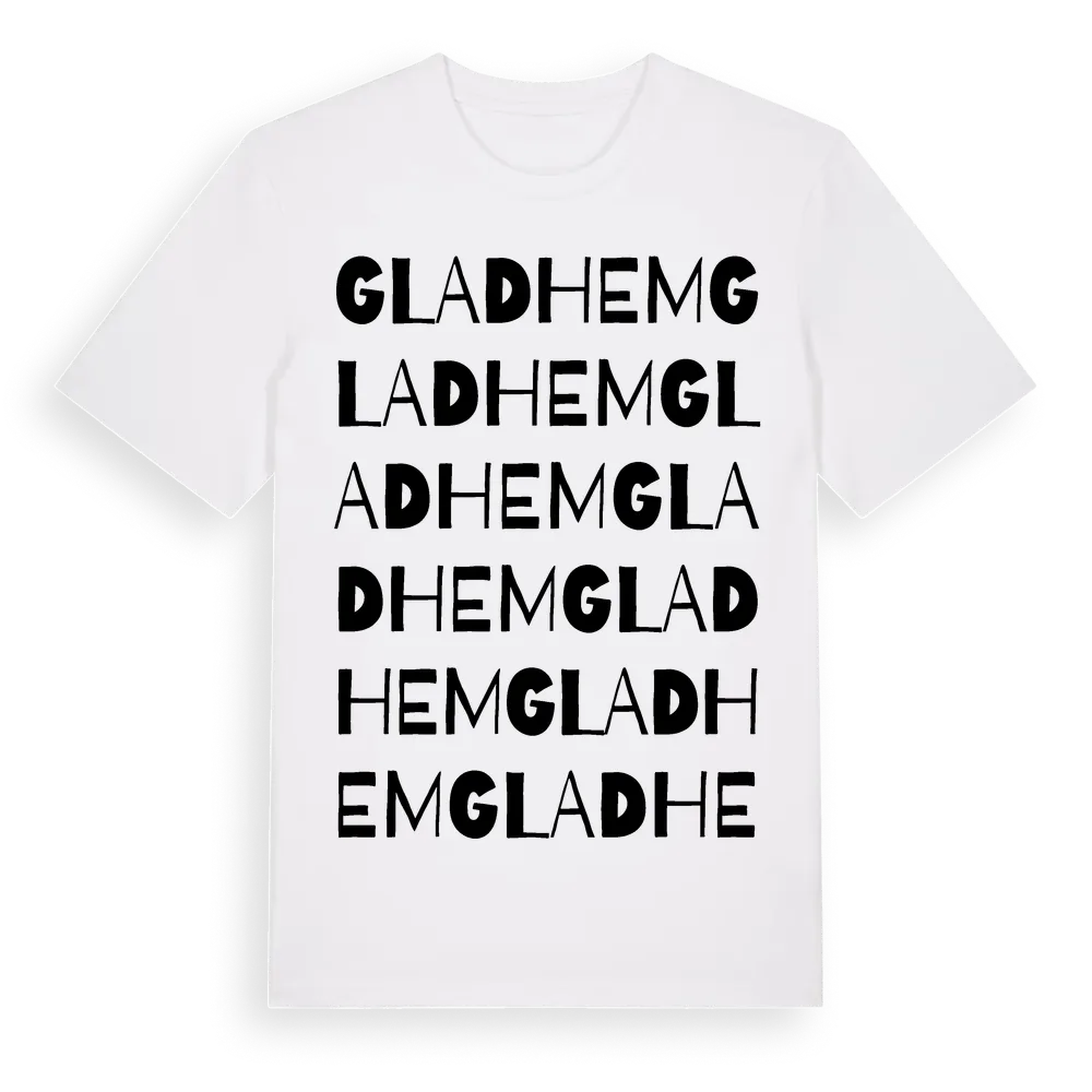 Gladhem ordlek t-shirt är inspirerad av Gladhem i Örebro län, Sverige. Tröjan är designad för dig som har en speciell koppling till platsen – oavsett om du bor här, har rötterna här eller bara älskar Gladhem.