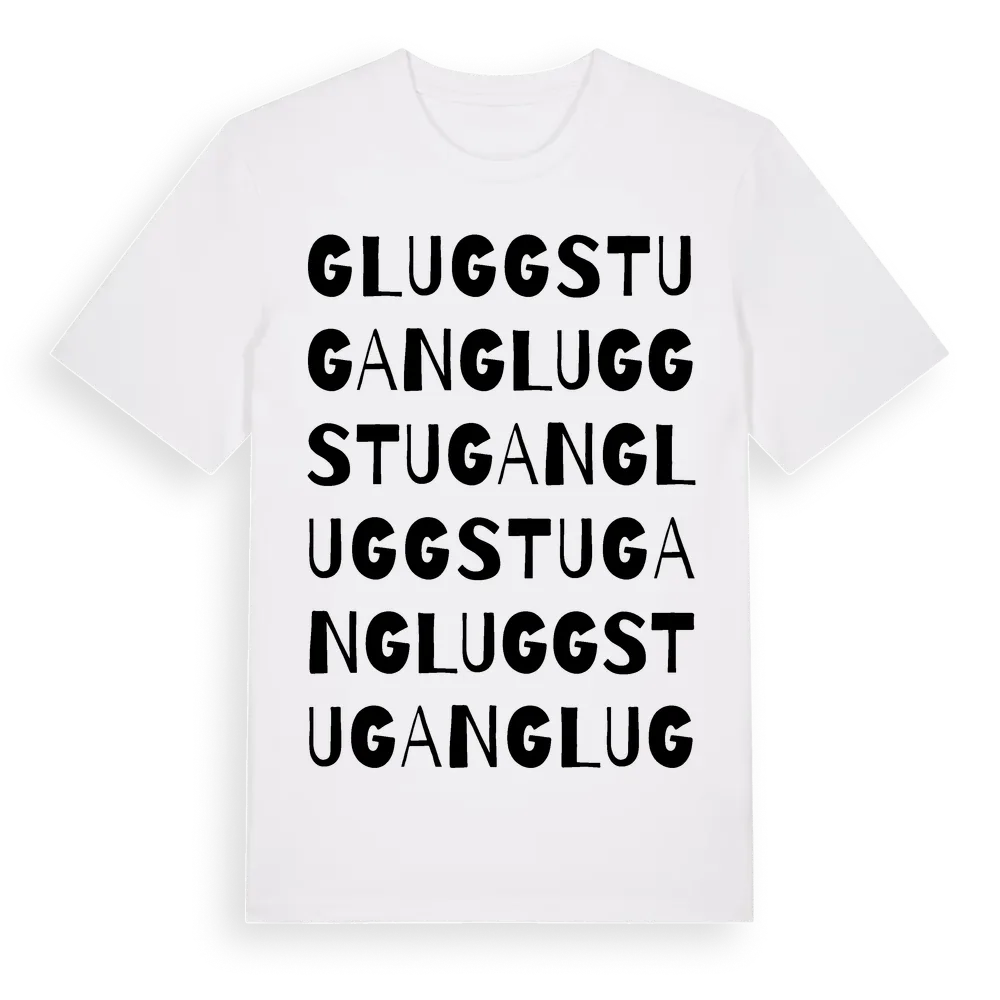 Gluggstugan ordlek t-shirt är inspirerad av Gluggstugan i Örebro län, Sverige. Tröjan är designad för dig som har en speciell koppling till platsen – oavsett om du bor här, har rötterna här eller bara älskar Gluggstugan.