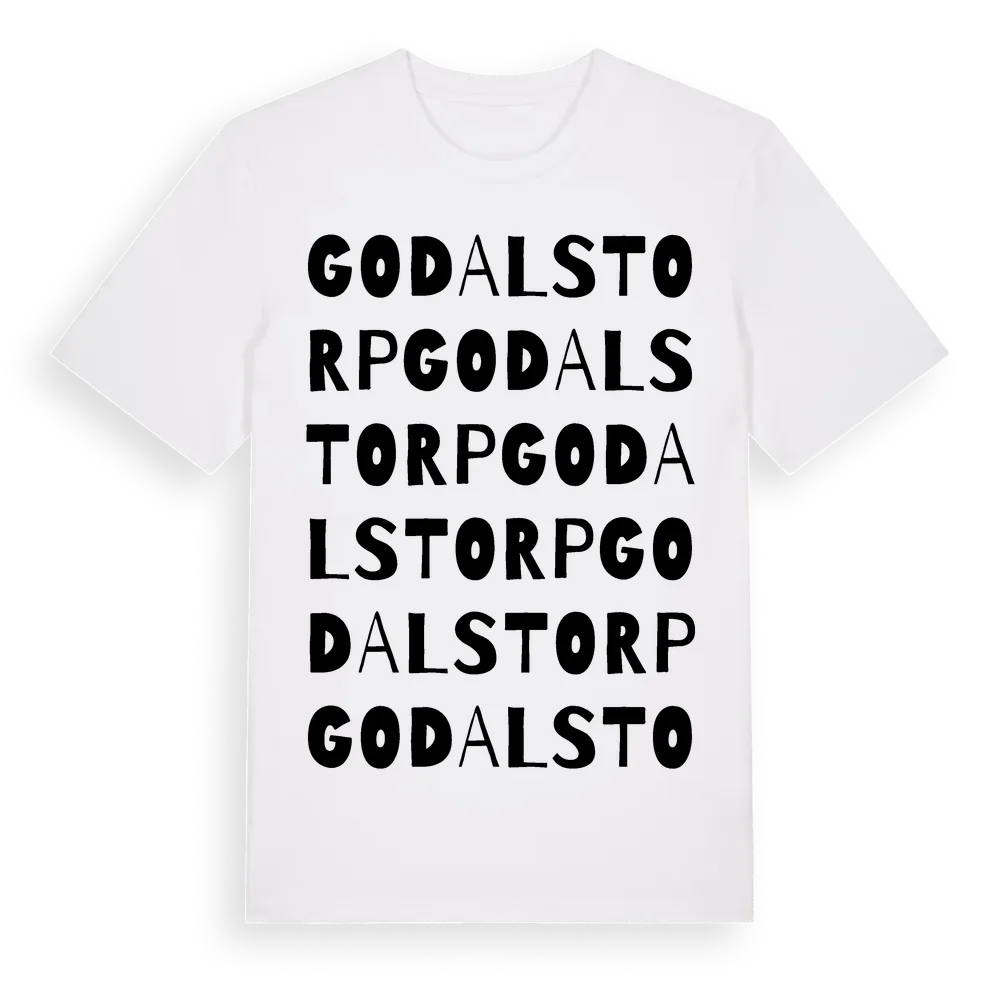 Godalstorp ordlek t-shirt är inspirerad av Godalstorp i Örebro län, Sverige. Tröjan är designad för dig som har en speciell koppling till platsen – oavsett om du bor här, har rötterna här eller bara älskar Godalstorp.