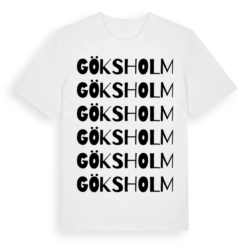 Göksholm ordlek t-shirt är inspirerad av byn Göksholm i Örebro län, Sverige. Tröjan är designad för dig som har en speciell koppling till platsen – oavsett om du bor här, har rötterna här eller bara älskar Göksholm.