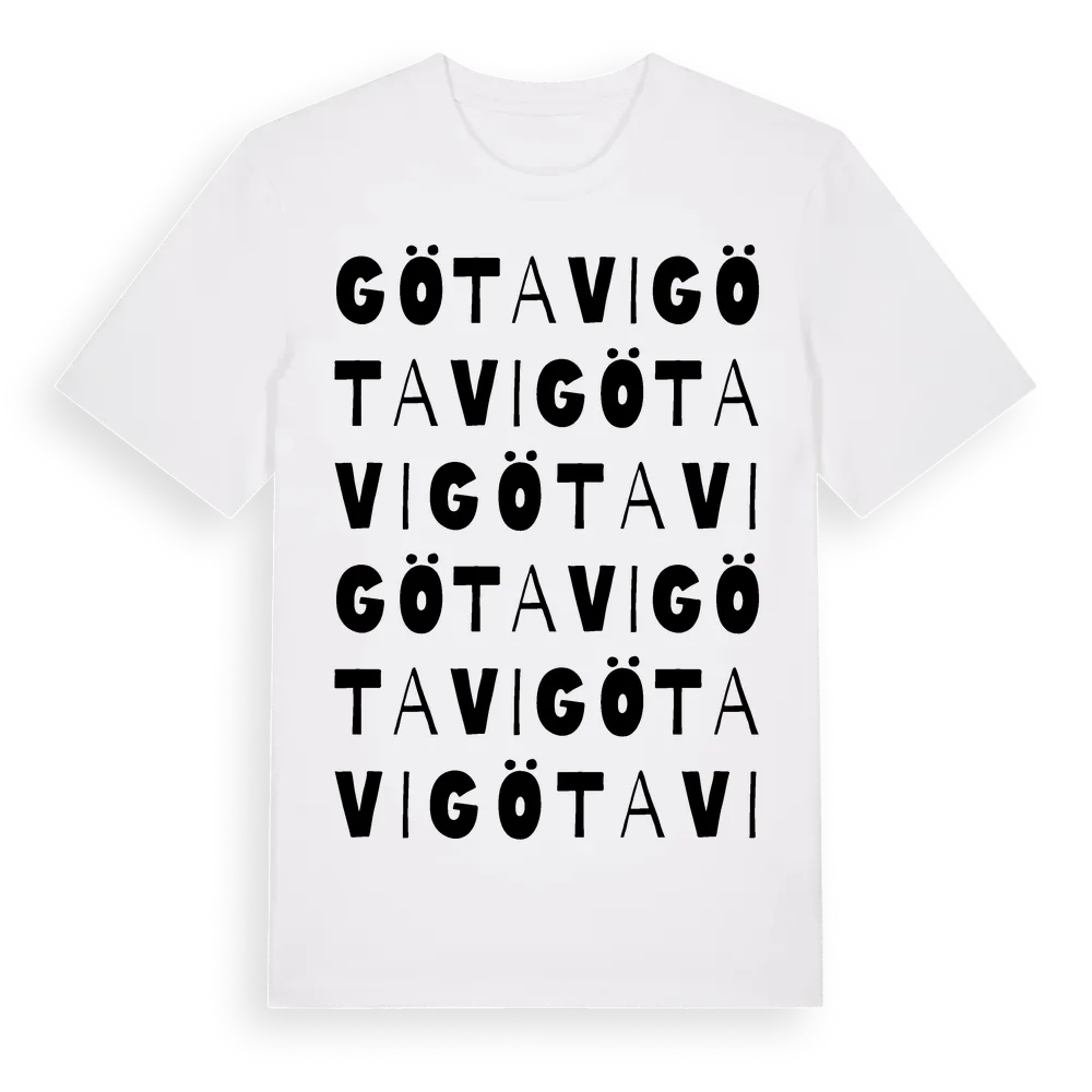 Götavi ordlek t-shirt är inspirerad av byn Götavi i Örebro län, Sverige. Tröjan är designad för dig som har en speciell koppling till platsen – oavsett om du bor här, har rötterna här eller bara älskar Götavi.