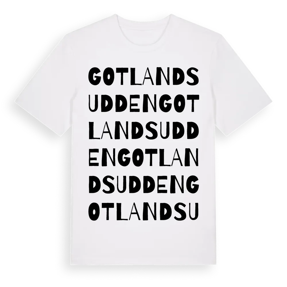 Gotlandsudden ordlek t-shirt är inspirerad av Gotlandsudden i Örebro län, Sverige. Tröjan är designad för dig som har en speciell koppling till platsen – oavsett om du bor här, har rötterna här eller bara älskar Gotlandsudden.