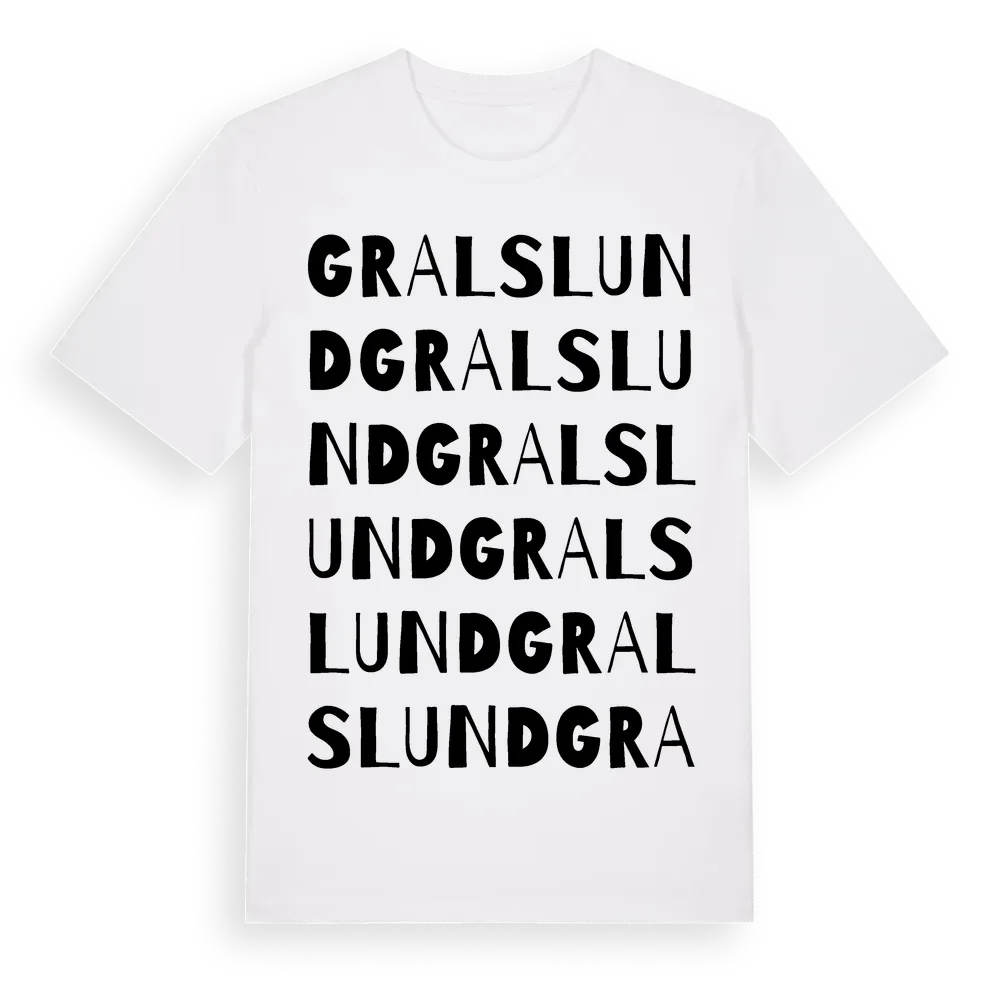 Gralslund ordlek t-shirt är inspirerad av byn Gralslund i Örebro län, Sverige. Tröjan är designad för dig som har en speciell koppling till platsen – oavsett om du bor här, har rötterna här eller bara älskar Gralslund.