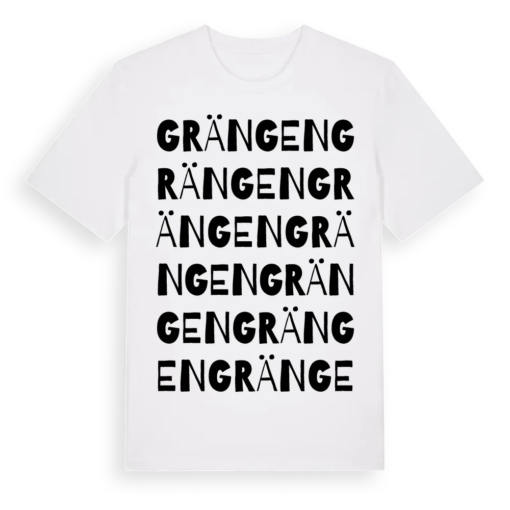 Grängen ordlek t-shirt är inspirerad av byn Grängen i Örebro län, Sverige. Tröjan är designad för dig som har en speciell koppling till platsen – oavsett om du bor här, har rötterna här eller bara älskar Grängen.