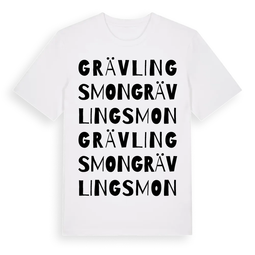 Grävlingsmon ordlek t-shirt är inspirerad av Grävlingsmon i Örebro län, Sverige. Tröjan är designad för dig som har en speciell koppling till platsen – oavsett om du bor här, har rötterna här eller bara älskar Grävlingsmon.