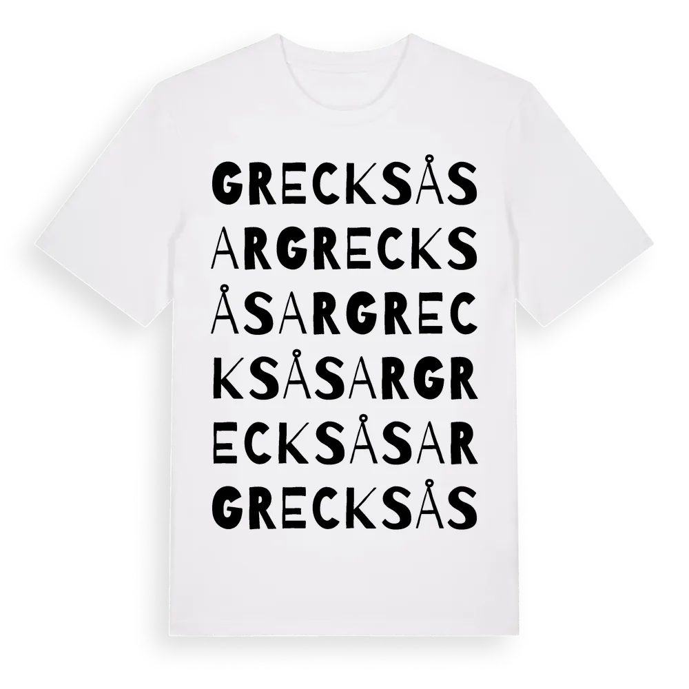 Grecksåsar ordlek t-shirt är inspirerad av byn Grecksåsar i Örebro län, Sverige. Tröjan är designad för dig som har en speciell koppling till platsen – oavsett om du bor här, har rötterna här eller bara älskar Grecksåsar.