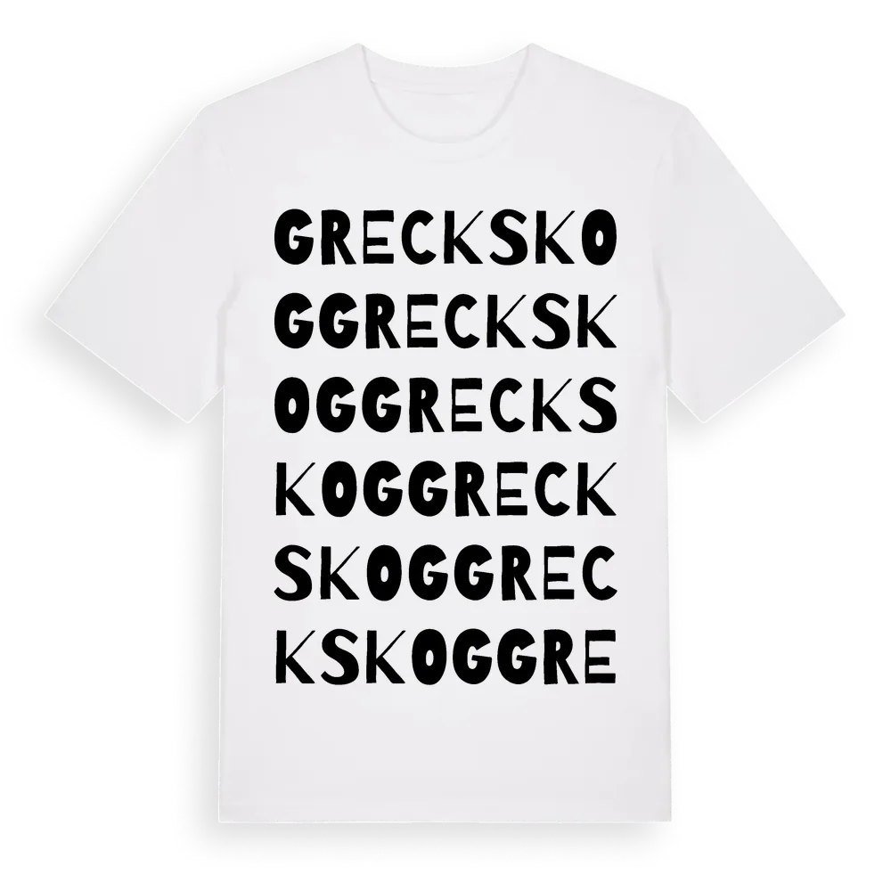 Greckskog ordlek t-shirt är inspirerad av Greckskog i Örebro län, Sverige. Tröjan är designad för dig som har en speciell koppling till platsen – oavsett om du bor här, har rötterna här eller bara älskar Greckskog.