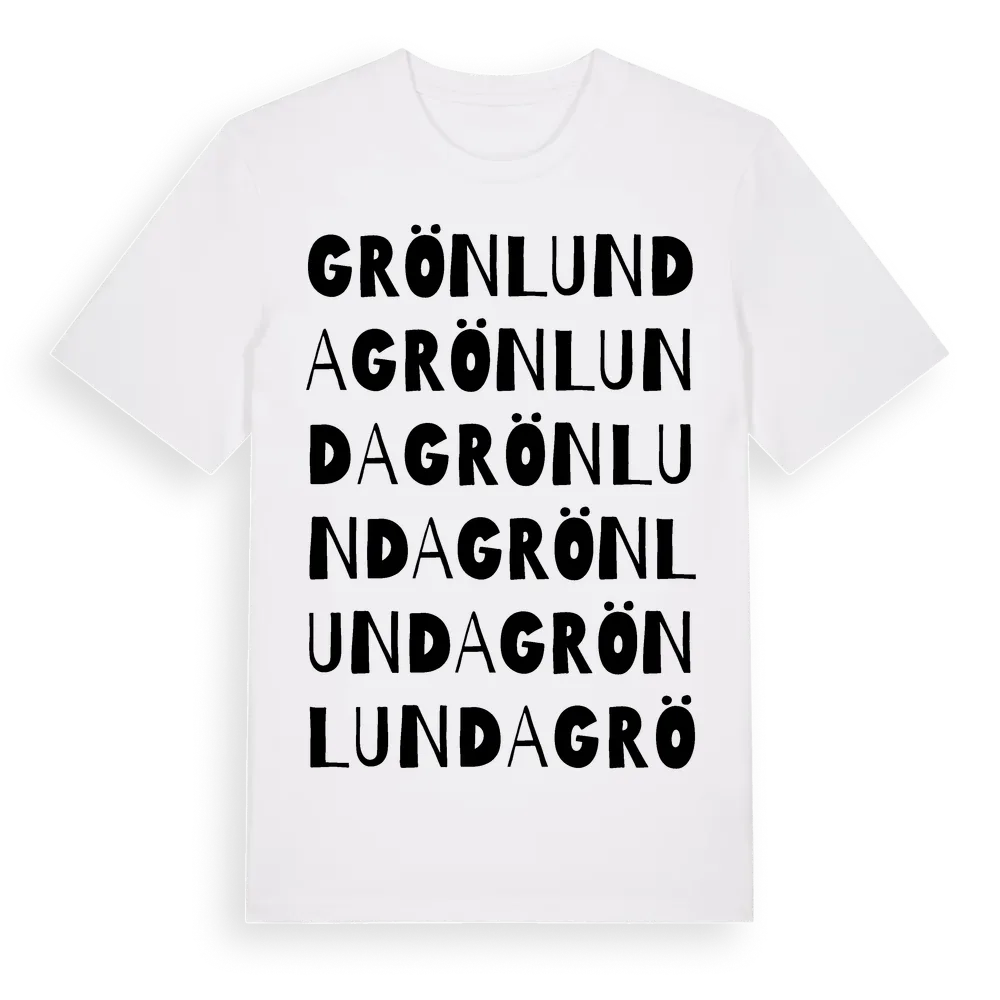 Grönlunda ordlek t-shirt är inspirerad av Grönlunda i Örebro län, Sverige. Tröjan är designad för dig som har en speciell koppling till platsen – oavsett om du bor här, har rötterna här eller bara älskar Grönlunda.
