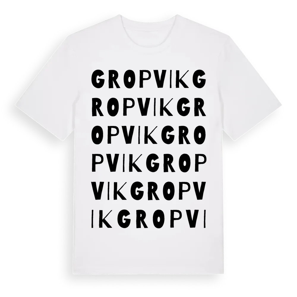 Gropvik ordlek t-shirt är inspirerad av byn Gropvik i Örebro län, Sverige. Tröjan är designad för dig som har en speciell koppling till platsen – oavsett om du bor här, har rötterna här eller bara älskar Gropvik.