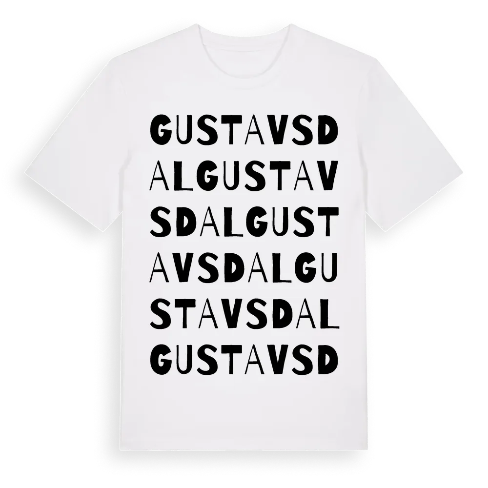 Gustavsdal ordlek t-shirt är inspirerad av Gustavsdal i Örebro län, Sverige. Tröjan är designad för dig som har en speciell koppling till platsen – oavsett om du bor här, har rötterna här eller bara älskar Gustavsdal.