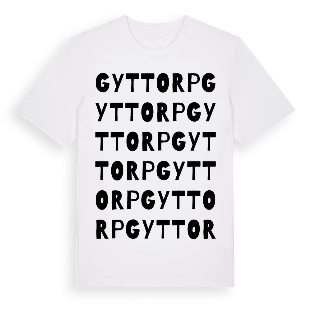 Gyttorp ordlek t-shirt är inspirerad av byn Gyttorp i Örebro län, Sverige. Tröjan är designad för dig som har en speciell koppling till platsen – oavsett om du bor här, har rötterna här eller bara älskar Gyttorp.