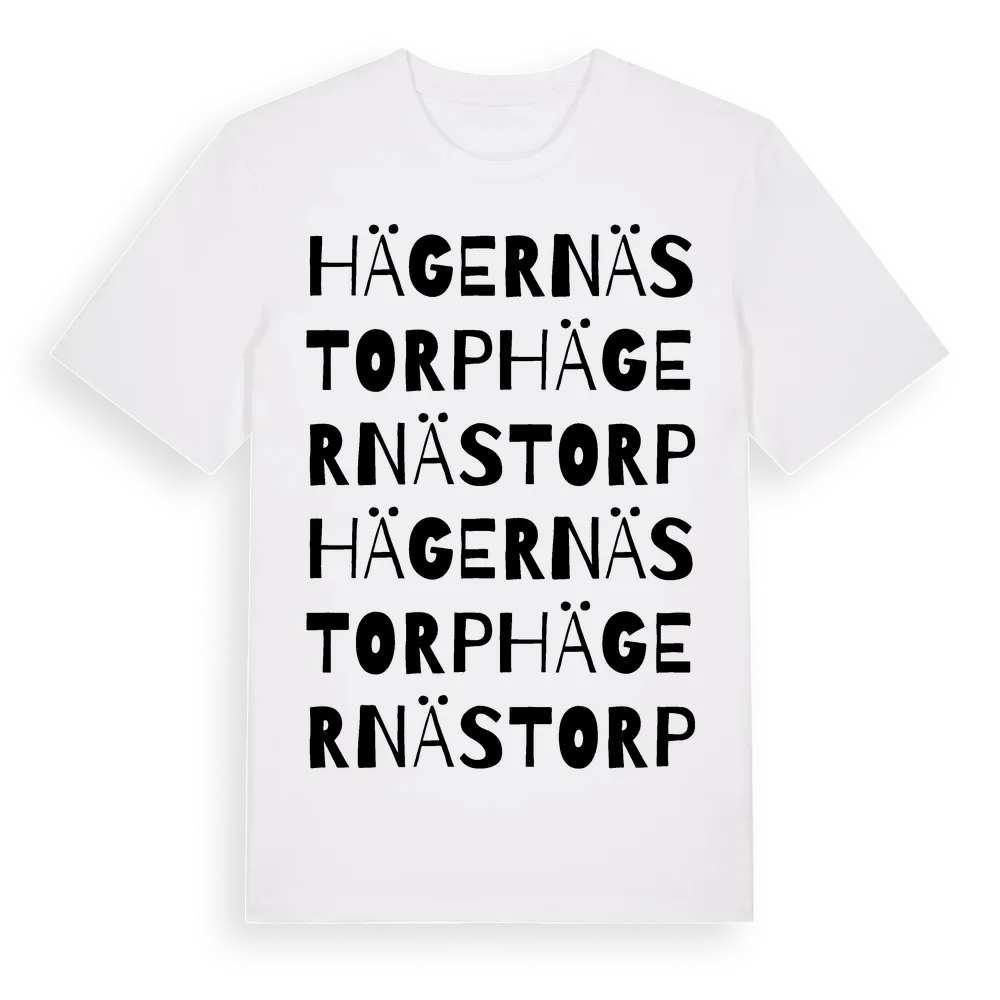 Hägernästorp ordlek t-shirt är inspirerad av Hägernästorp i Örebro län, Sverige. Tröjan är designad för dig som har en speciell koppling till platsen – oavsett om du bor här, har rötterna här eller bara älskar Hägernästorp.