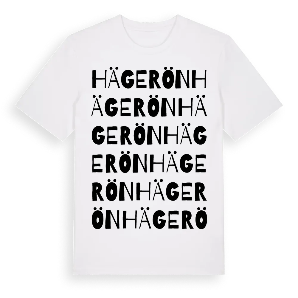 Hägerön ordlek t-shirt är inspirerad av Hägerön i Örebro län, Sverige. Tröjan är designad för dig som har en speciell koppling till platsen – oavsett om du bor här, har rötterna här eller bara älskar Hägerön.