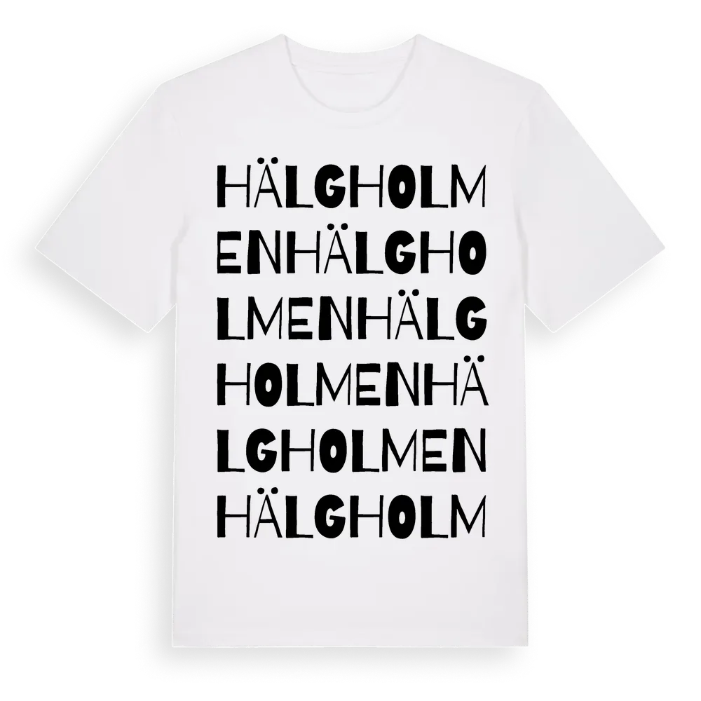 Hälgholmen ordlek t-shirt är inspirerad av Hälgholmen i Örebro län, Sverige. Tröjan är designad för dig som har en speciell koppling till platsen – oavsett om du bor här, har rötterna här eller bara älskar Hälgholmen.