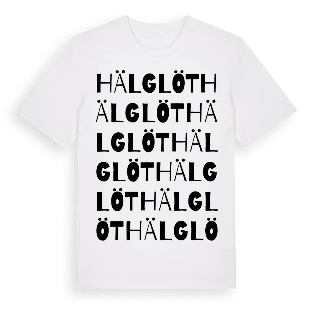 Hälglöt ordlek t-shirt är inspirerad av byn Hälglöt i Örebro län, Sverige. Tröjan är designad för dig som har en speciell koppling till platsen – oavsett om du bor här, har rötterna här eller bara älskar Hälglöt.