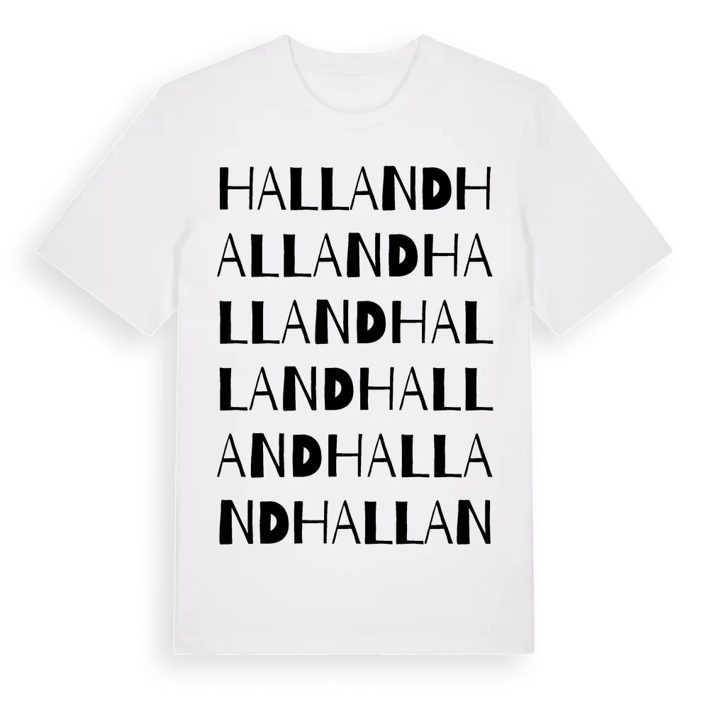 Halland ordlek t-shirt är inspirerad av Halland i Örebro län, Sverige. Tröjan är designad för dig som har en speciell koppling till platsen – oavsett om du bor här, har rötterna här eller bara älskar Halland.