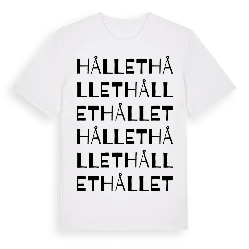 En ordlek byggd på Hållets namn. Subtilt och klurig – ett motiv som bara de som verkligen känner platsen fullt ut förstår. Premium bomull, unisex – från Hållet i Örebro län.