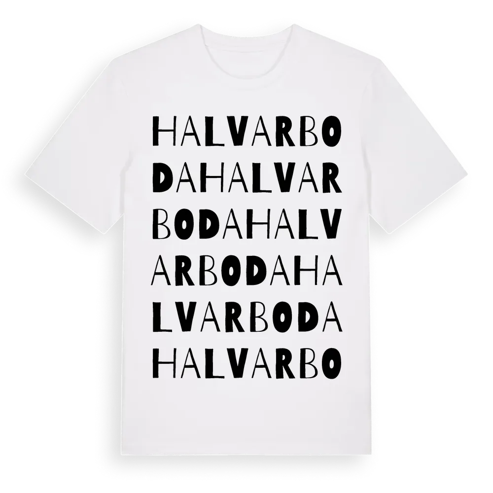 Halvarboda ordlek t-shirt är inspirerad av Halvarboda i Örebro län, Sverige. Tröjan är designad för dig som har en speciell koppling till platsen – oavsett om du bor här, har rötterna här eller bara älskar Halvarboda.