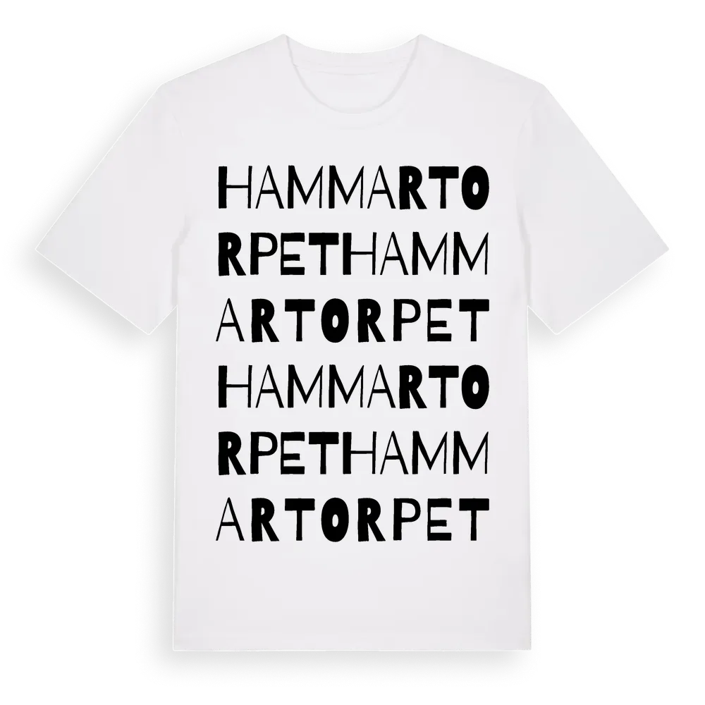 Hammartorpet ordlek t-shirt är inspirerad av Hammartorpet i Örebro län, Sverige. Tröjan är designad för dig som har en speciell koppling till platsen – oavsett om du bor här, har rötterna här eller bara älskar Hammartorpet.