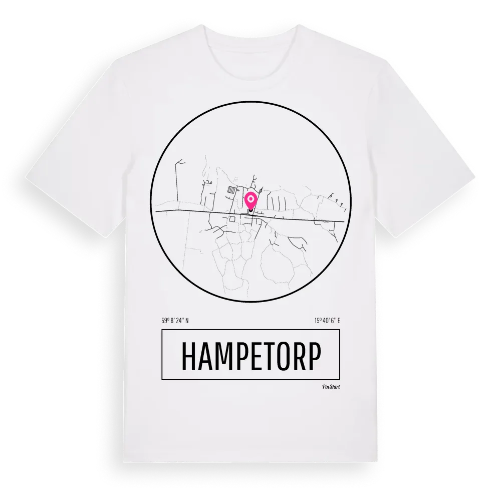 Hampetorp t-shirt är inspirerad av byn Hampetorp i Örebro län, Sverige. Tröjan är designad för dig som har en speciell koppling till platsen – oavsett om du bor här, har rötterna här eller bara älskar Hampetorp.