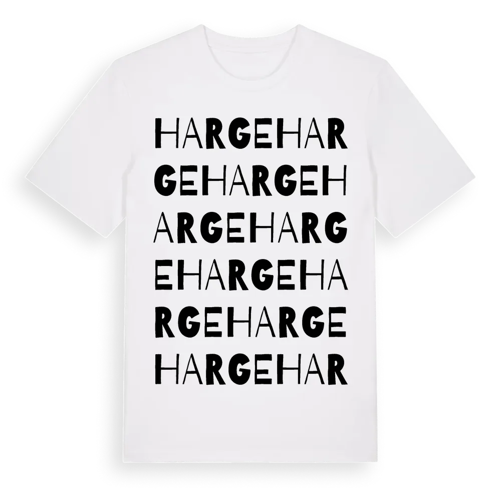 Harge ordlek t-shirt är inspirerad av byn Harge i Örebro län, Sverige. Tröjan är designad för dig som har en speciell koppling till platsen – oavsett om du bor här, har rötterna här eller bara älskar Harge.