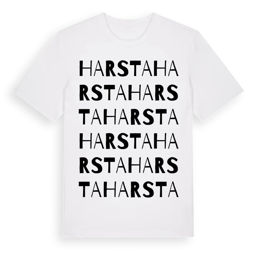Harsta ordlek t-shirt är inspirerad av Harsta i Örebro län, Sverige. Tröjan är designad för dig som har en speciell koppling till platsen – oavsett om du bor här, har rötterna här eller bara älskar Harsta.