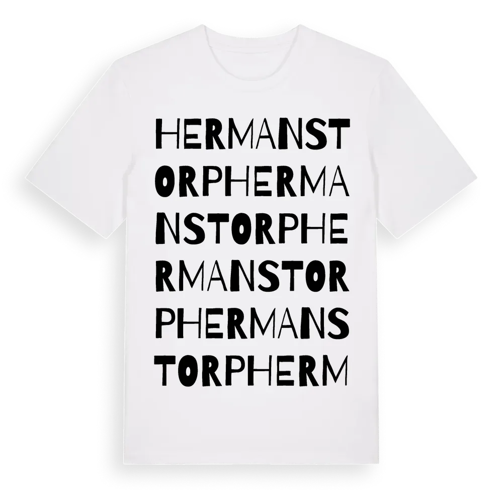 Hermanstorp ordlek t-shirt är inspirerad av stadsdelen Hermanstorp i Örebro län, Sverige. Tröjan är designad för dig som har en speciell koppling till platsen – oavsett om du bor här, har rötterna här eller bara älskar Hermanstorp.