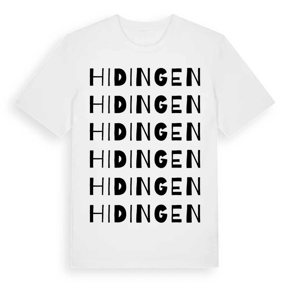 Hidingen ordlek t-shirt är inspirerad av byn Hidingen i Örebro län, Sverige. Tröjan är designad för dig som har en speciell koppling till platsen – oavsett om du bor här, har rötterna här eller bara älskar Hidingen.