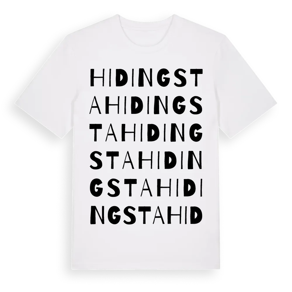 En ordlek byggd på Hidingstas namn. Subtilt och klurig – ett motiv som bara de som verkligen känner platsen fullt ut förstår. Premium bomull, unisex – från byn Hidingsta i Örebro län.