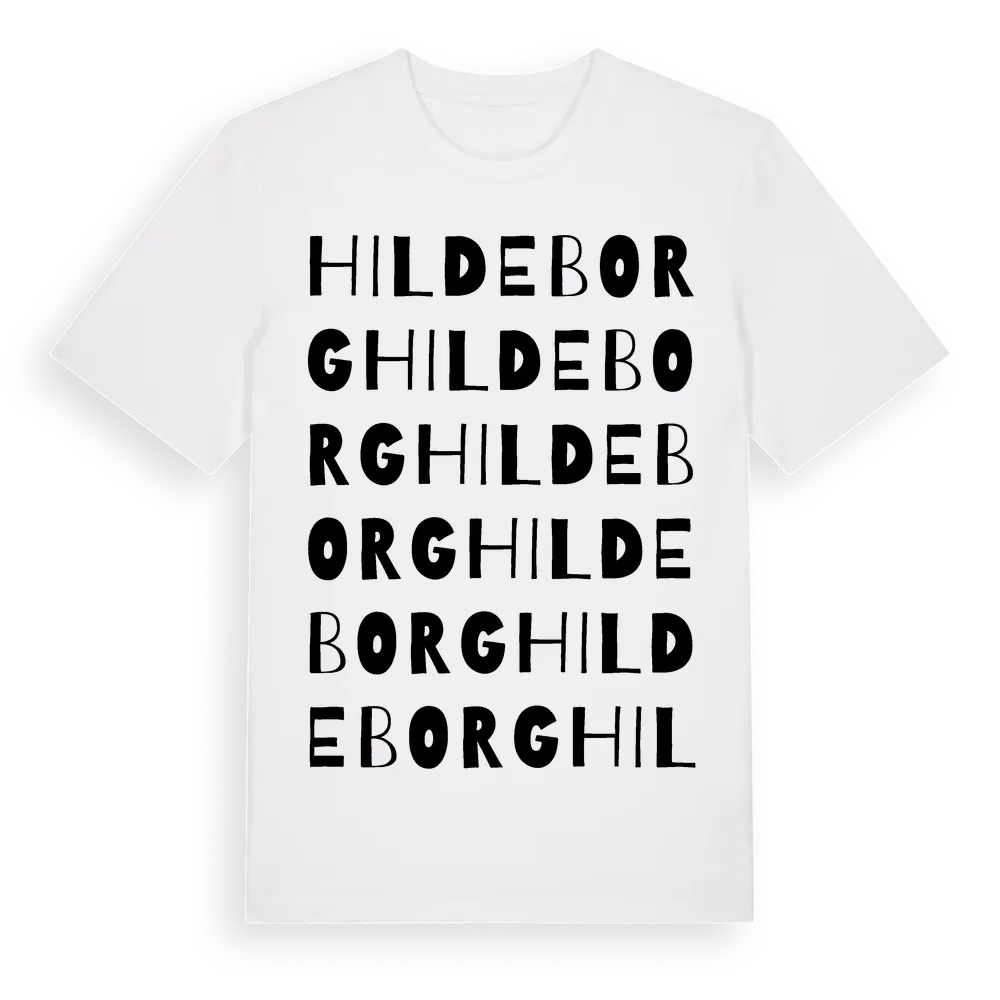 Hildeborg ordlek t-shirt är inspirerad av Hildeborg i Örebro län, Sverige. Tröjan är designad för dig som har en speciell koppling till platsen – oavsett om du bor här, har rötterna här eller bara älskar Hildeborg.